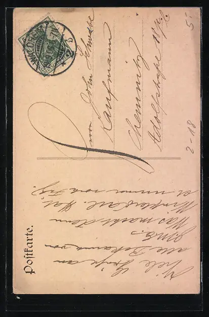 gelaufen 1906, Eckknicke li. oben u. re. unten, guter Zustand