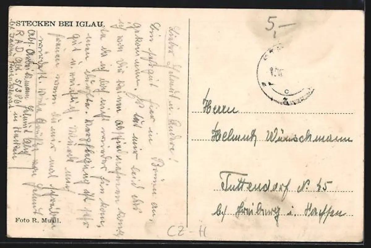 AK Stecken bei Iglau, Ortsansicht von der Feldflur aus