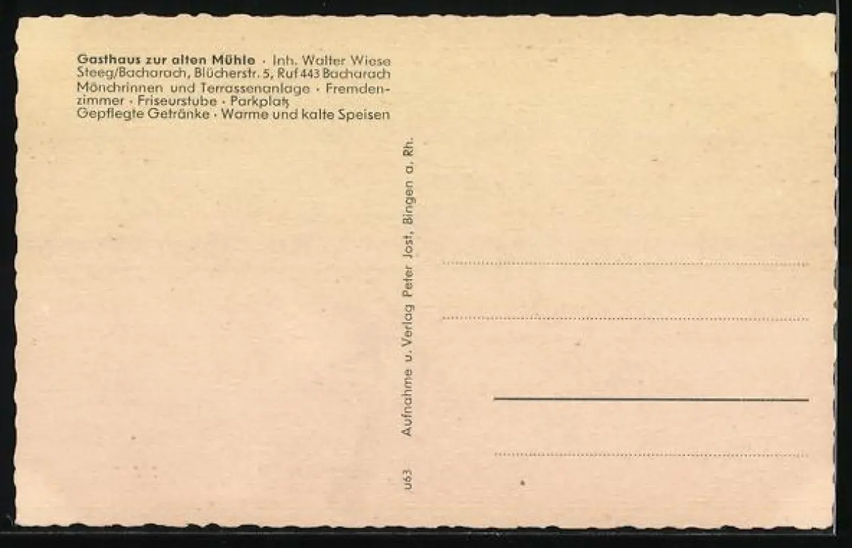 AK Steeg-Bacharach a. Rh., Gasthaus zur alten Mühle, Inh. Walter Wiese