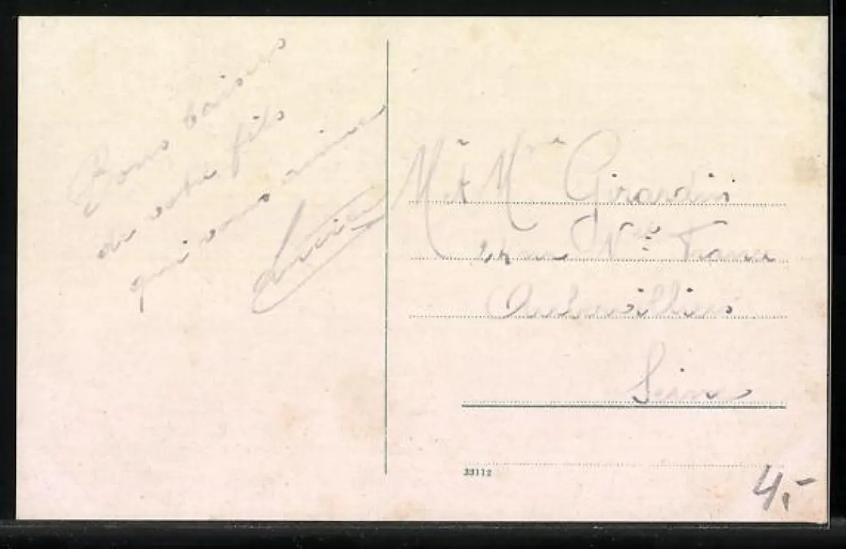 Personenbezogene Daten auf der Rückseite der Karte wurden durch blauen Textmarker unkenntlich gemacht. Die blauen Stellen sind auf die Vorderseite durchgeweicht und wirken sich negativ auf das Postkartenfoto aus