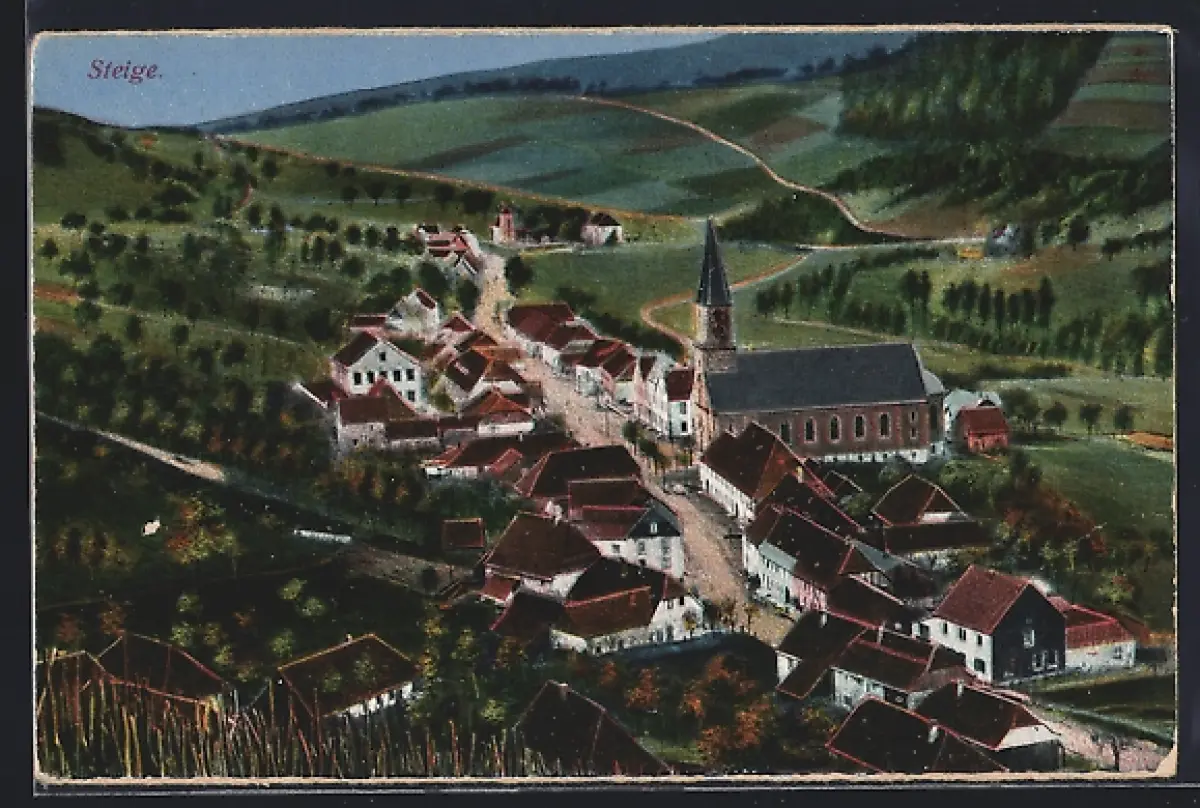AK Steige, Totale vom Berg aus gesehen