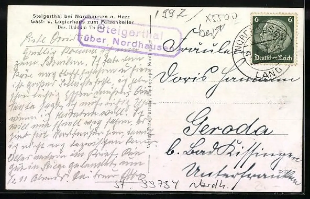 AK Steigerthal /Nordhausen, Gast- u- Logierhaus zum Felsenkeller B. Taudte