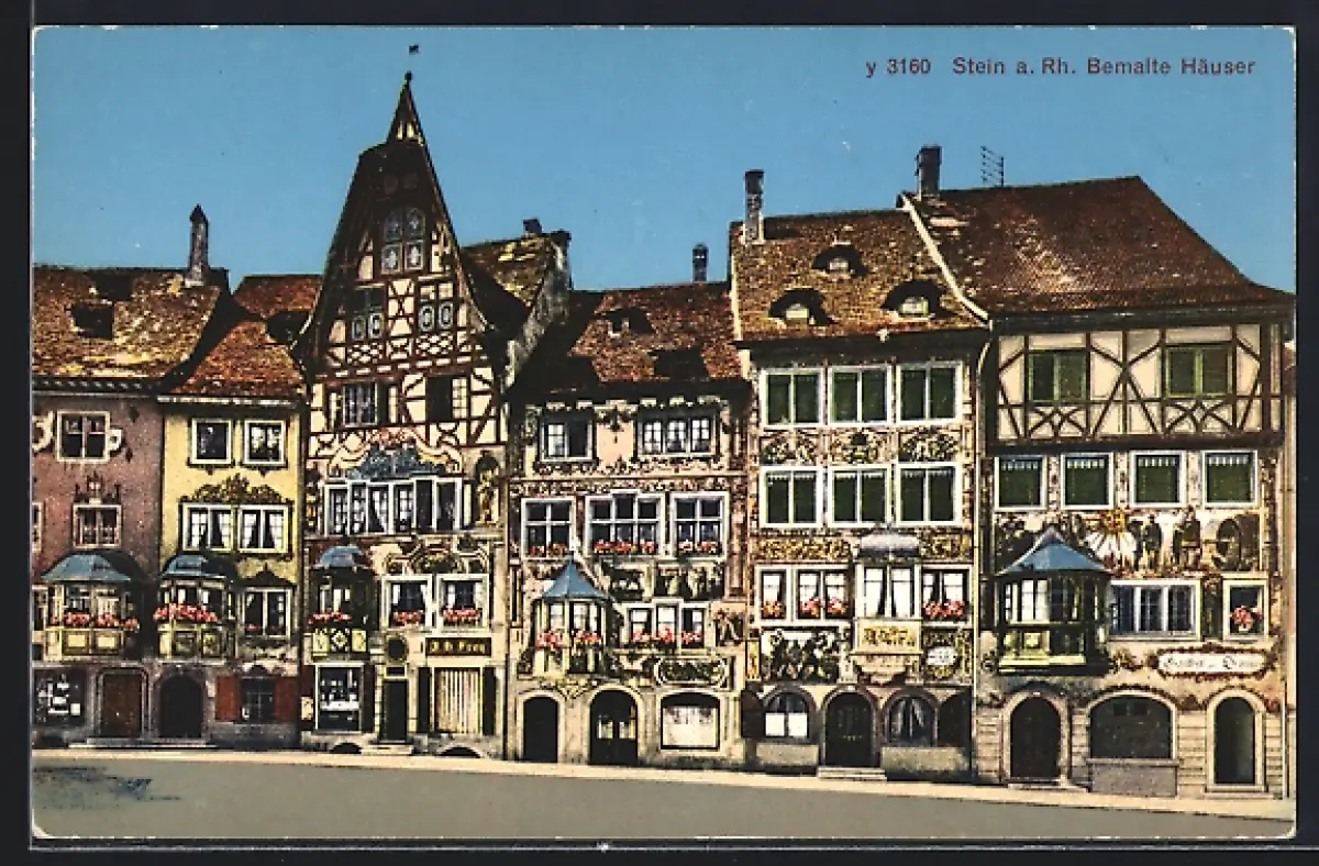 AK Stein a. Rh., Bemalte Häuser, Panorama
