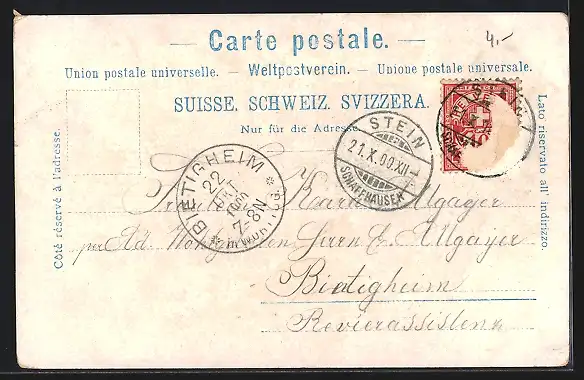 alte Ansichtskarte, gelaufen 1900, Briefmarke entfernt, rückseitig Oberflächenschaden, guter Zustand