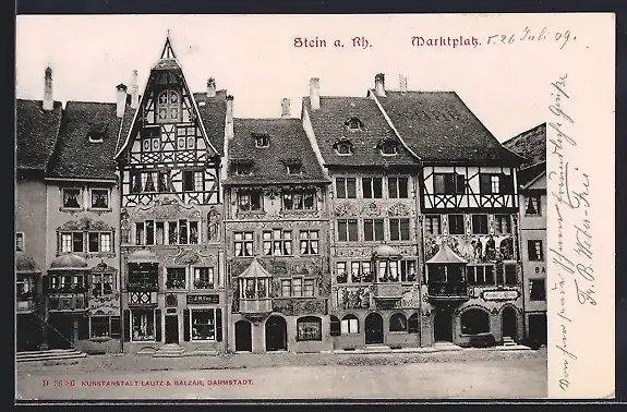 AK Stein a. Rh., Marktplatz mit Gasthof zur Sonne, Bäckerei zur Krone und Geschäft J.H. Frei