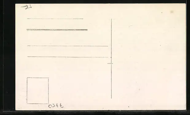 Personenbezogene Daten auf der Rückseite der Karte wurden durch blauen Textmarker unkenntlich gemacht. Die blauen Stellen sind auf die Vorderseite durchgeweicht und wirken sich negativ auf das Postkartenfoto aus
