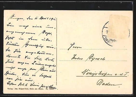 alte Ansichtskarte, gelaufen 1912, Briefmarke entfernt, guter Zustand