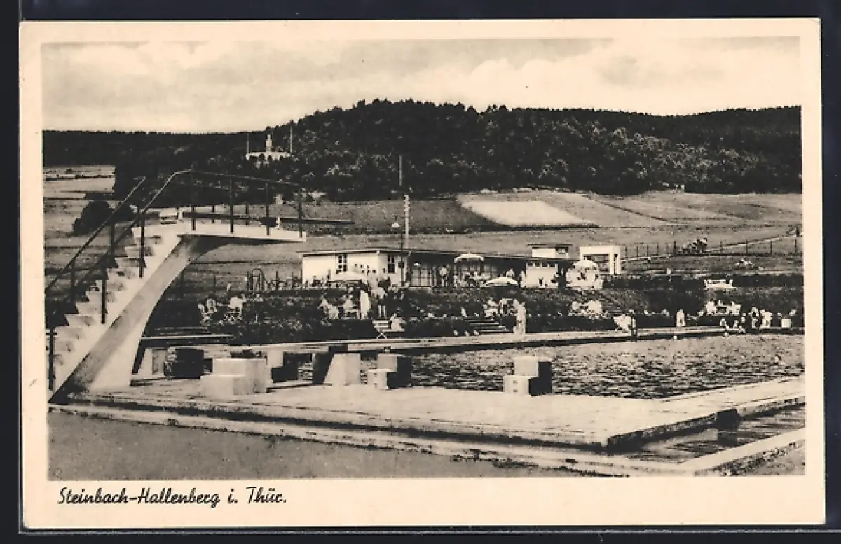 AK Steinbach-Hallenberg i. Thür., Freibad mit Sprungturm