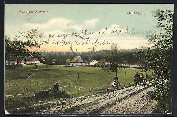 AK Steinberge /Ruppiner Schweiz, Blick über Wiesen auf den Ort