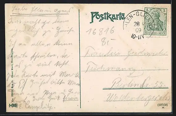 alte Ansichtskarte, gelaufen 1909, Stempelspur, guter Zustand