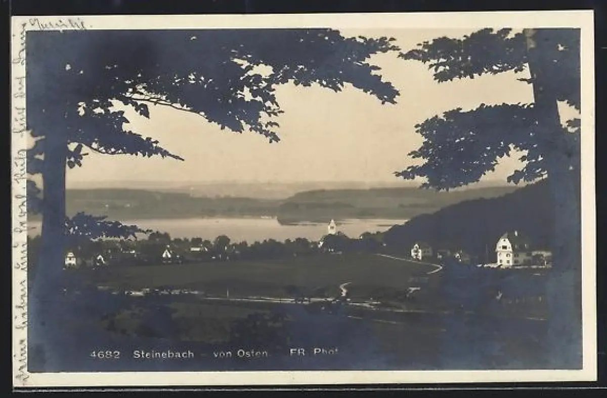 AK Steinebach / Wessling, Ansicht von Osten, See, Kirche, Wohnhäuser