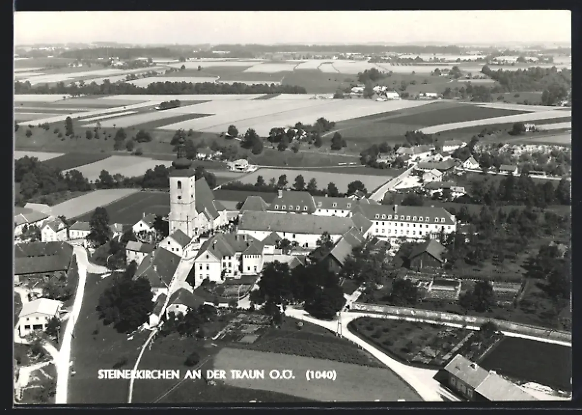 AK Steinerkirchen an der Traun, Ortsansicht mit Kirche aus der Vogelschau
