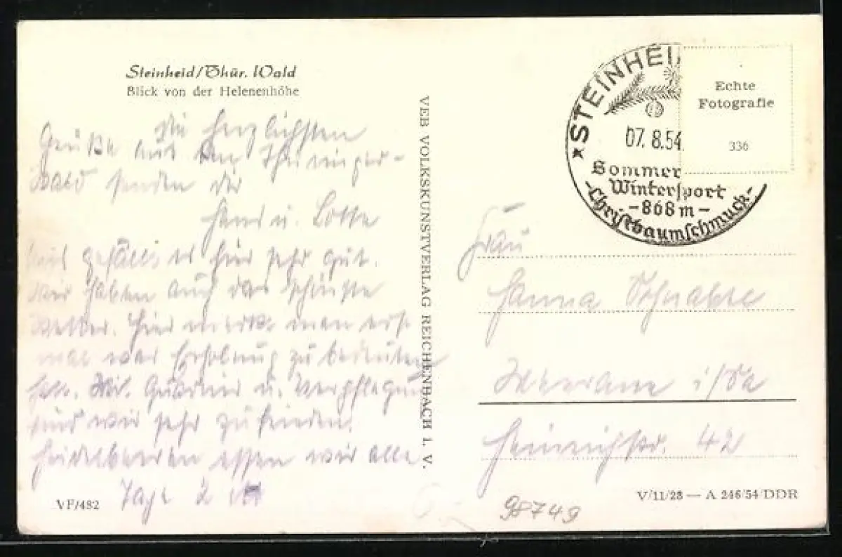 AK Steinheid /Thür. Wald, Blick auf den Ort von der Helenenhöhe