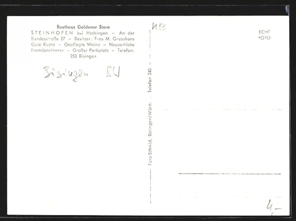 AK Steinhofen bei Hechingen, Rasthaus Goldener Stern an der Bundesstrasse 27, Bes. Frau M. Grosshans