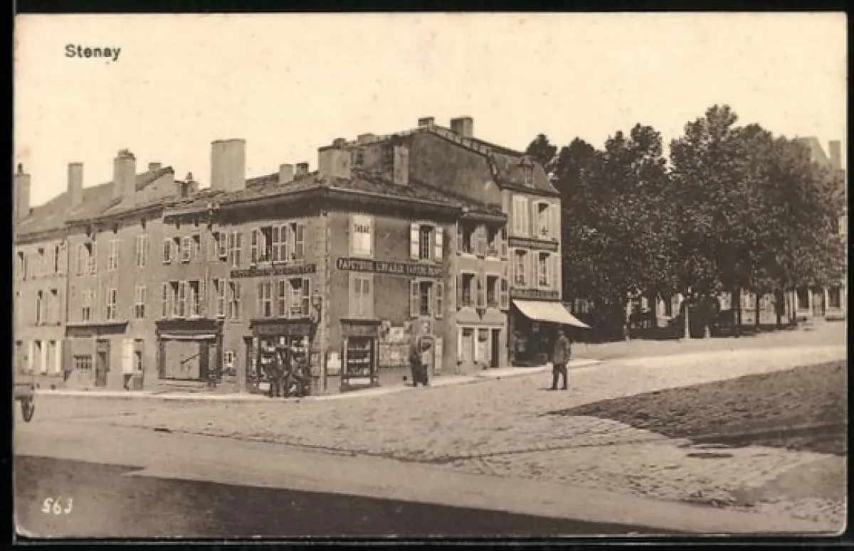 AK Stenay, Vue de la place centrale avec bâtiments et arbres