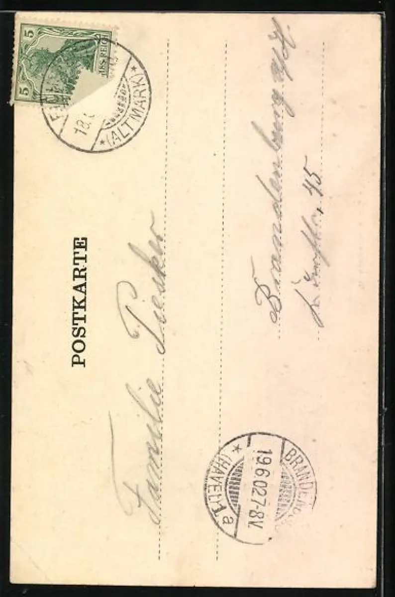 gelaufen 1902, Briefmarke entfernt, Eckknick re. unten, guter Zustand