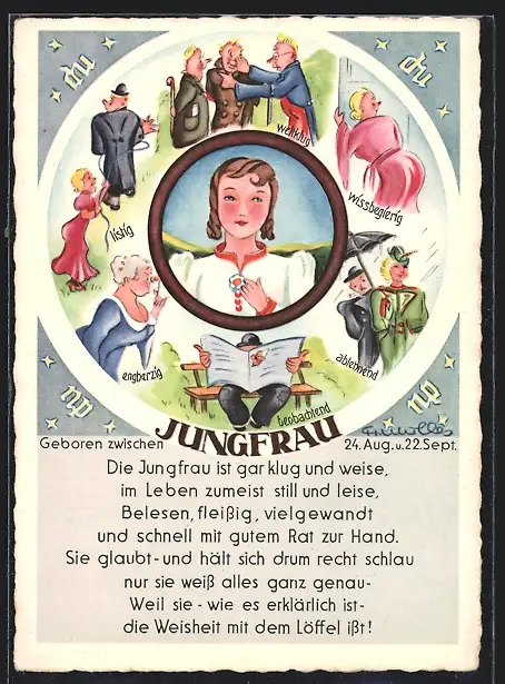 AK Sternzeichen Jungfrau mit dessen Persönlichkeitsmerkmalen