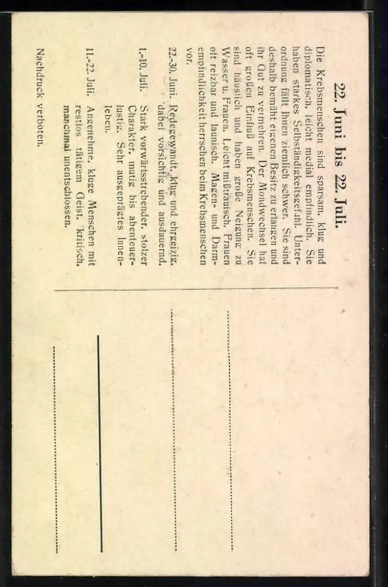 AK Sternzeichen Krebs, Charakterisierung des Krebs-Menschen