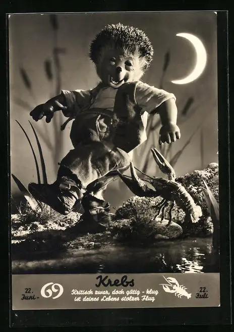 AK Sternzeichen Krebs, Mecki wird vom Krebs gezwackt