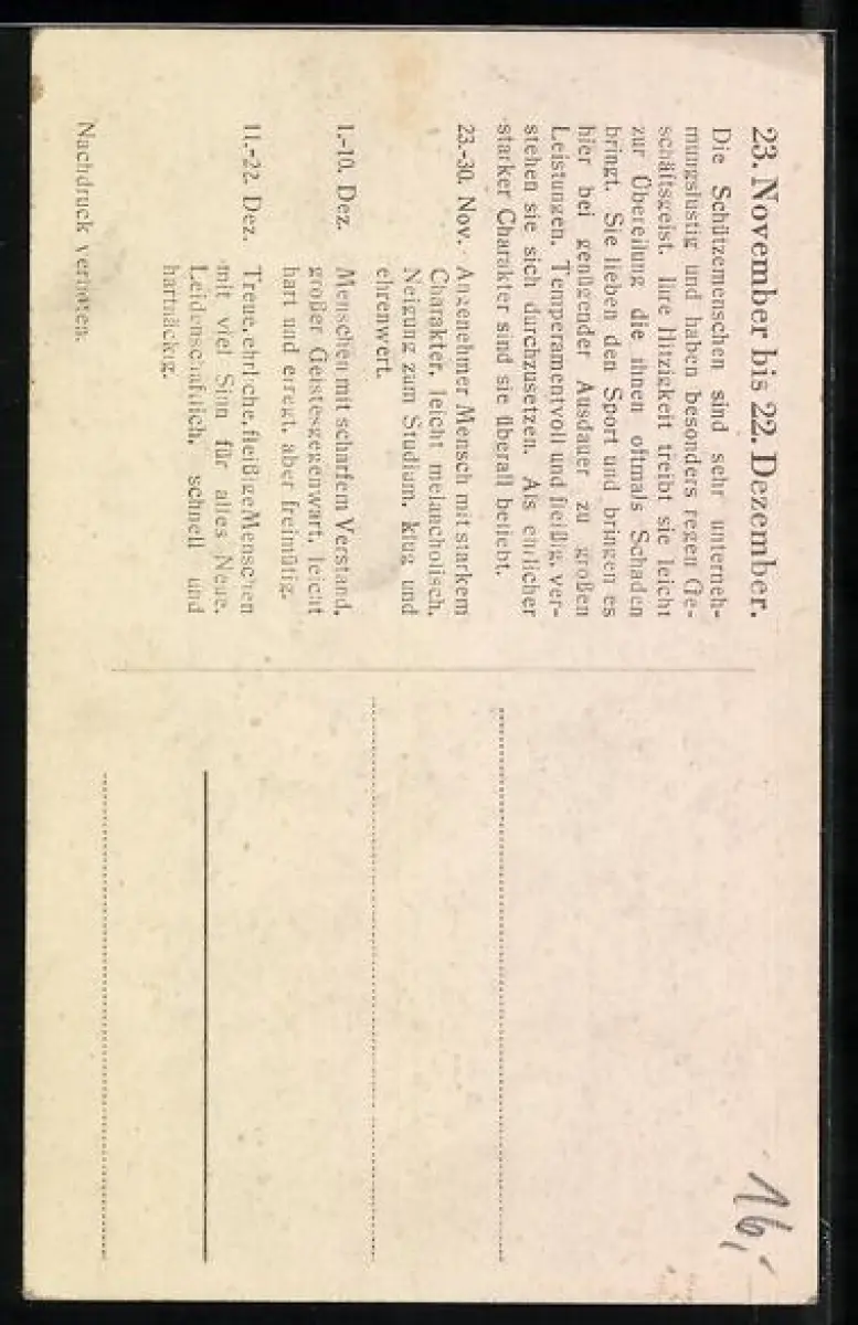 AK Sternzeichen Schütze, Eigenschaften der Schütze-Menschen, Schütze mit Armbrust auf einem Berggipfel