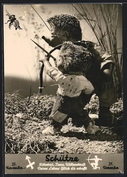 AK Sternzeichen Schütze, Mecki und Sohn bei der Jagd auf eine Biene