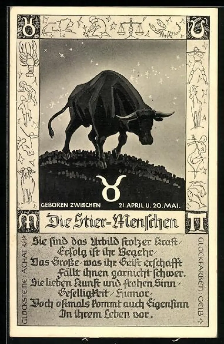 AK Sternzeichen Stier, Stier-Menschen und ihre Charaktereigenschaften