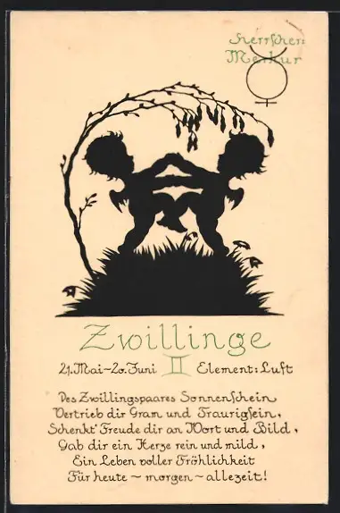 AK Sternzeichen Zwillinge, Geboren 21. Mai u. 20. Juni, Element Luft