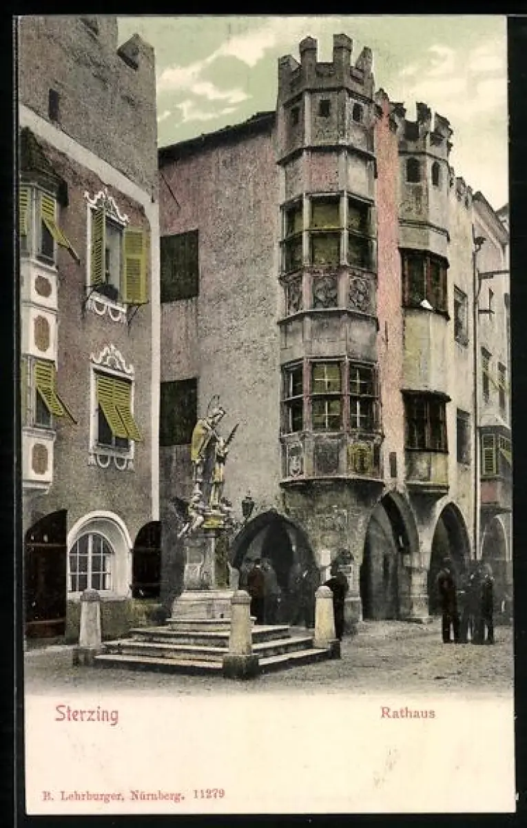 AK Sterzing, Partie am Rathaus mit Denkmal