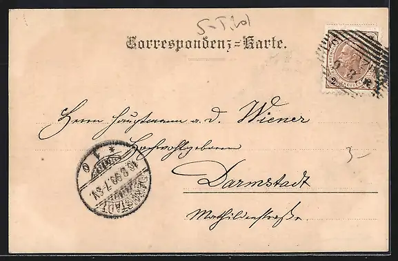 alte Ansichtskarte, gelaufen 1899, Stempelspur, Eckknick li. oben, guter Zustand