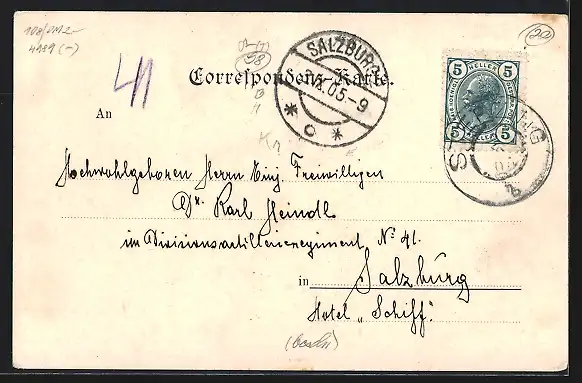 alte Ansichtskarte, gelaufen 1905, guter Zustand
