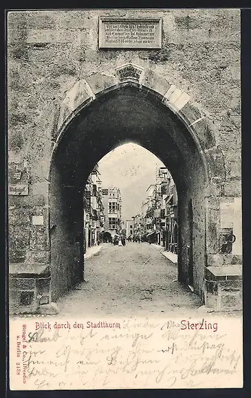 AK Sterzing, Strassenblick durch den Stadtturm