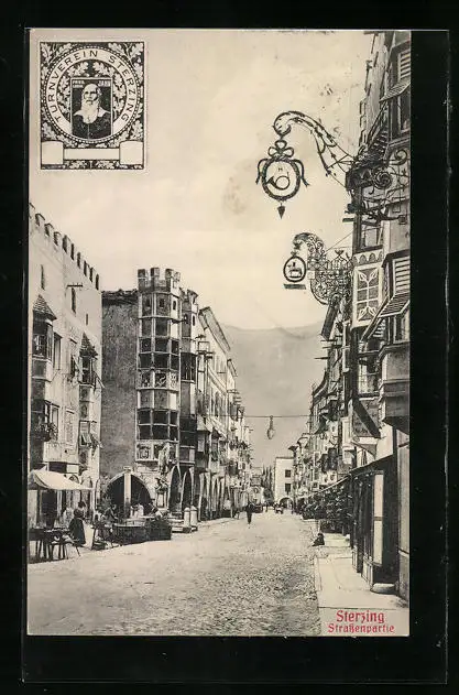 AK Sterzing, Strassenpartie, Portrait Turnvater Jahn