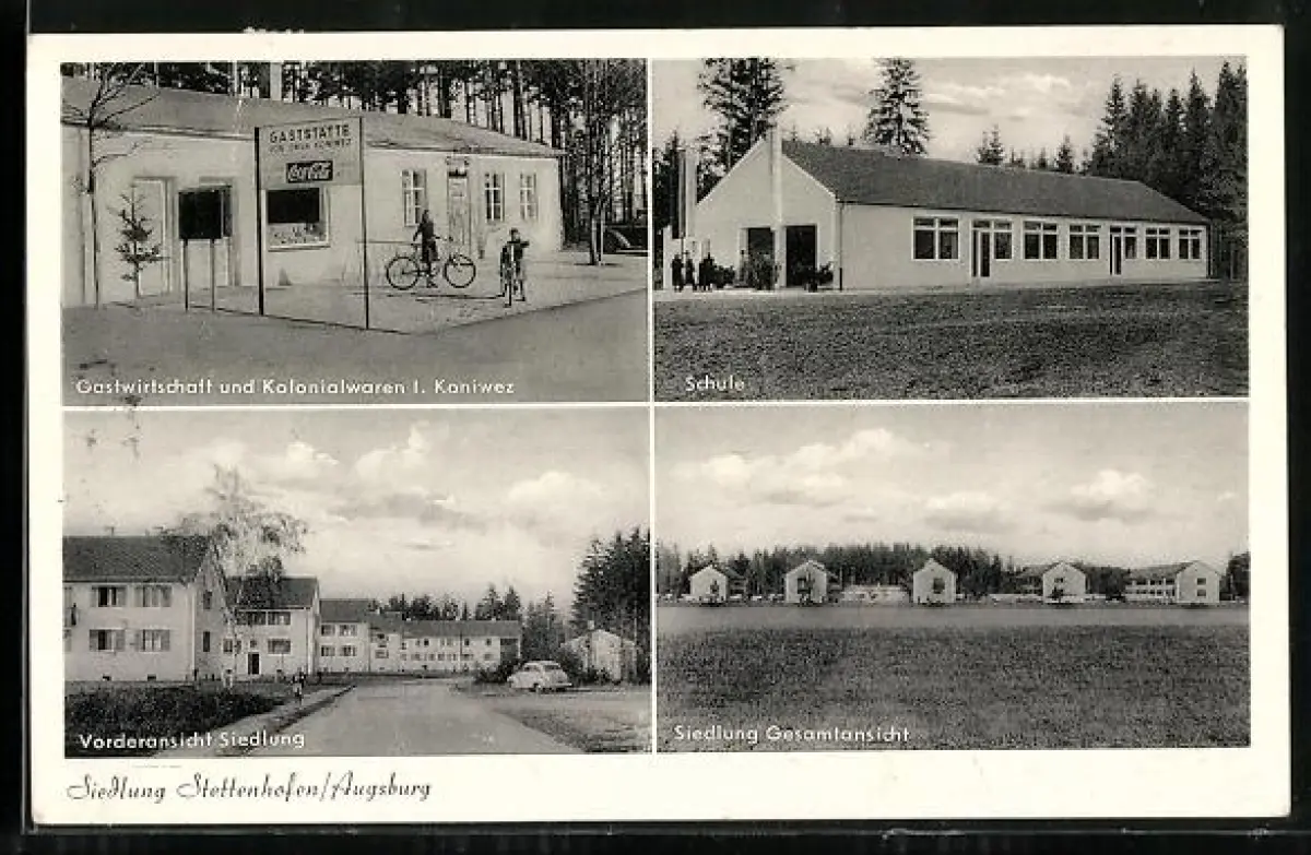 AK Stettenhofen, Siedlung, Schule, Gastwirtschaft u. Kolonialwaren Konowitz, Gesamtansicht