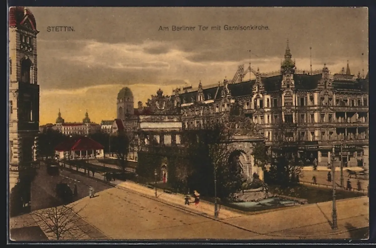 AK Stettin, Am Berliner Tor mit Garnisonkirche