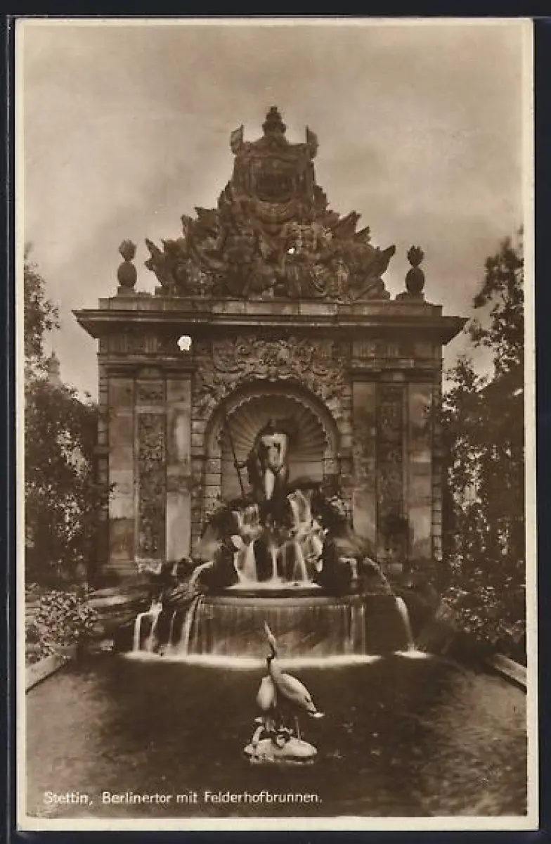 AK Stettin, Berlinertor mit Felderhofbrunnen