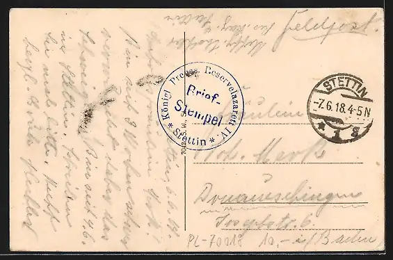 gelaufen 1918, Stecknadelloch oben mittig, guter Zustand