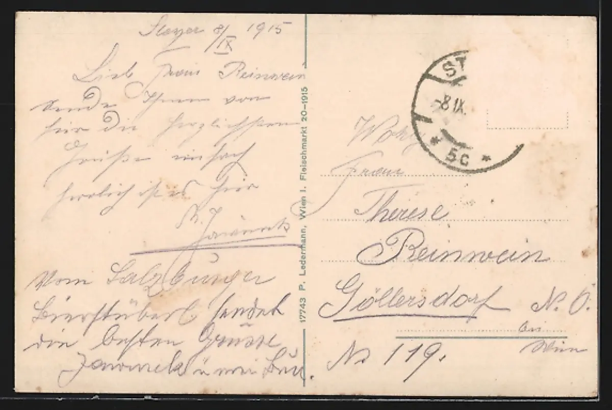 alte Ansichtskarte, gelaufen, Briefmarke entfernt, rückseitig Oberflächenschaden, guter Zustand