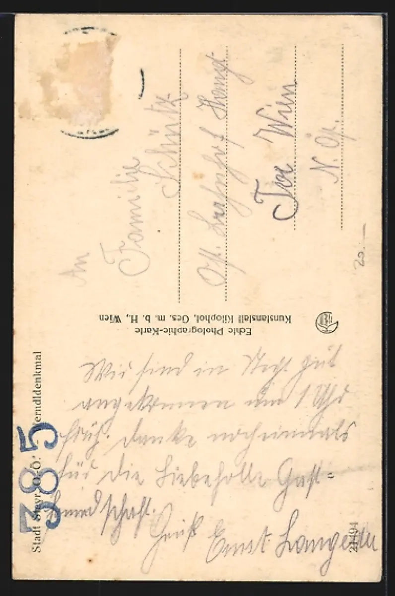 AK Steyr /O.-Ö., Blick auf das Josef Werndl-Denkmal