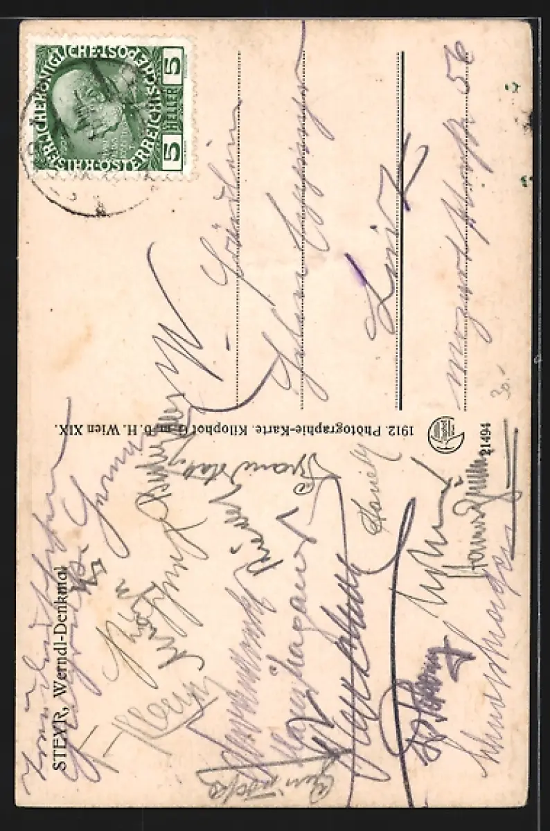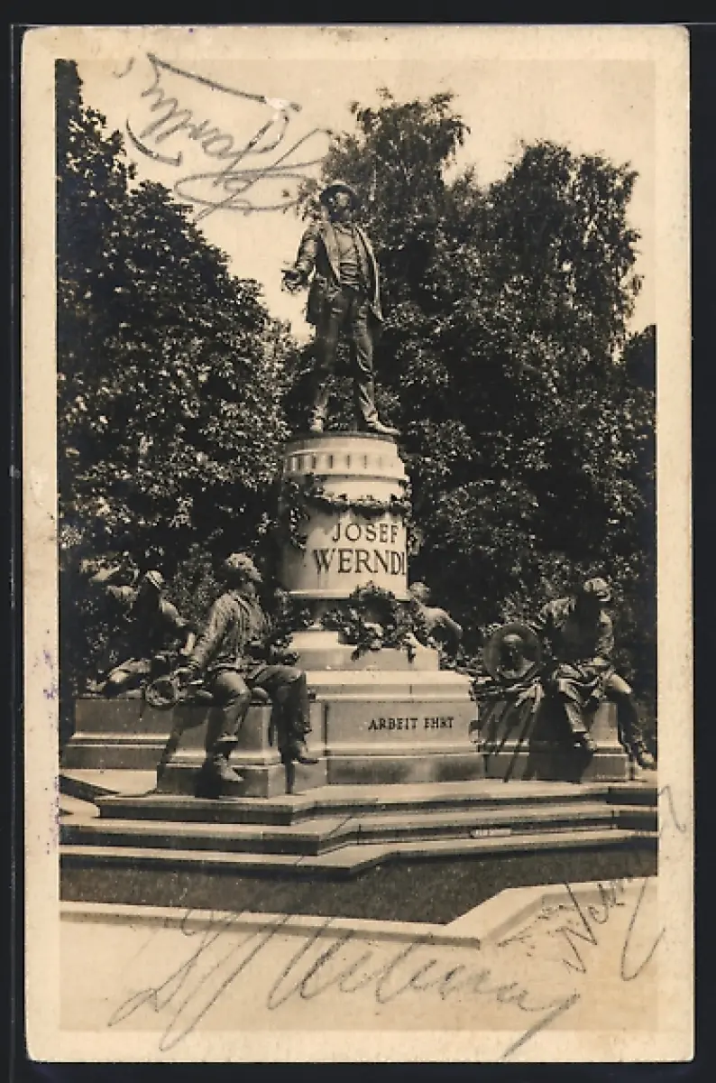 AK Steyr /O.-Ö., Blick auf das Josef Werndl-Denkmal