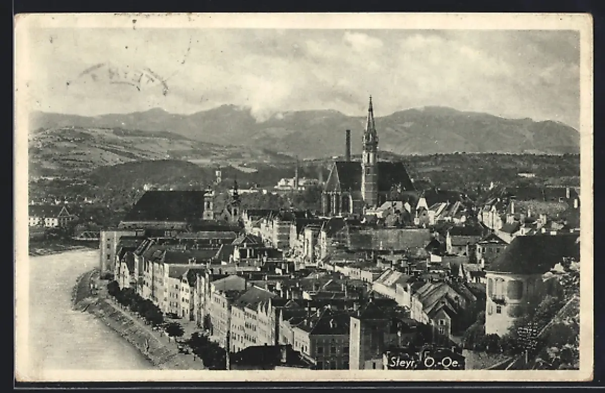 AK Steyr /O.-Oe., Teilansicht mit Kirche