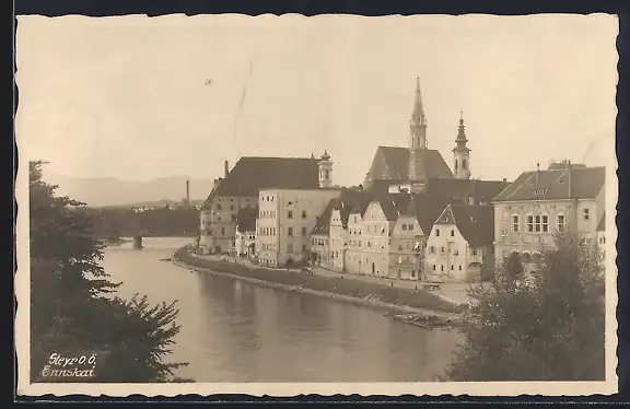 AK Steyr /O. Ö., Uferpartie mit Ennskai