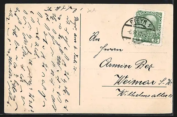 alte Ansichtskarte, gelaufen 1910, Stempelspur, guter Zustand