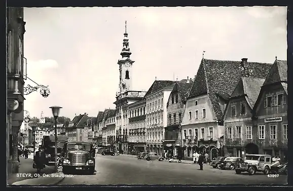 AK Steyr /Ob. Oe., Gasthof zum Goldenen Ochsen am Stadtplatz