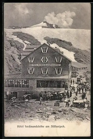 AK Stilfserjoch, Hotel Ferdinandshöhe mit Besuchern