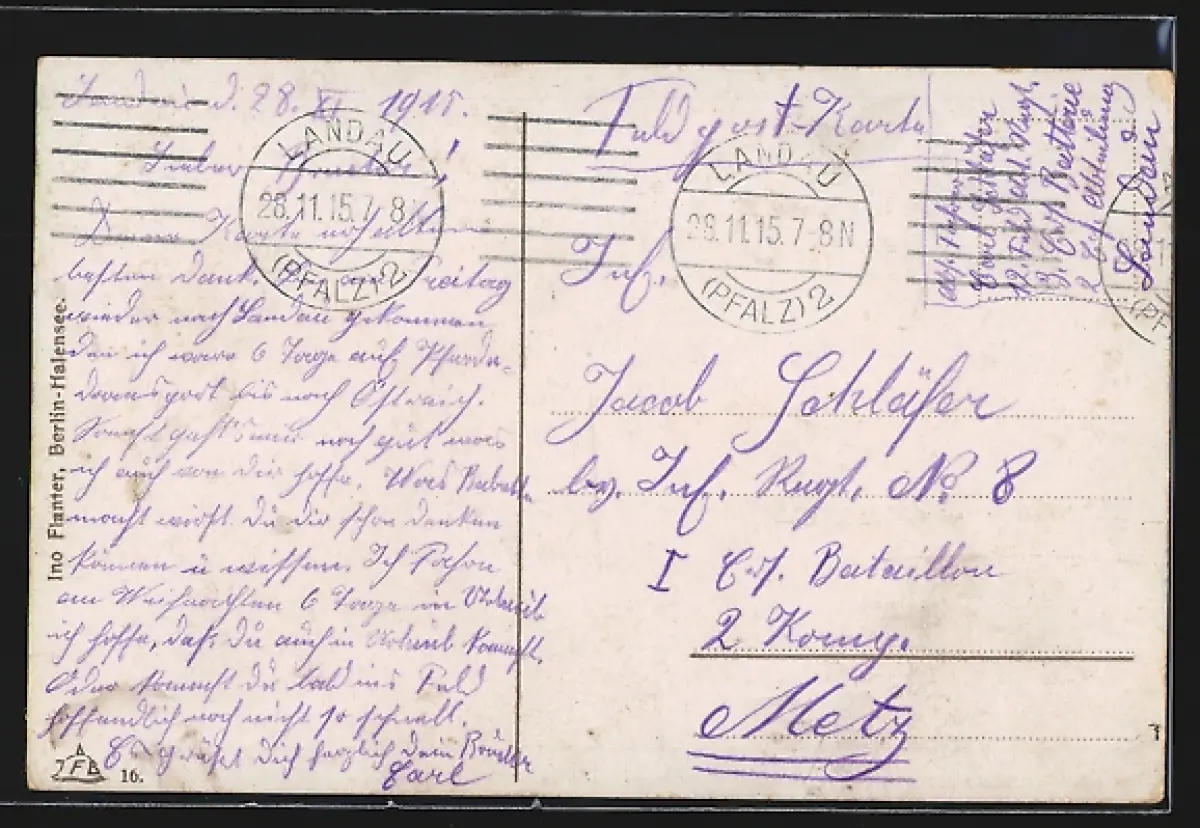 alte Ansichtskarte, gelaufen 1915, Eckknick unten re., guter Zustand
