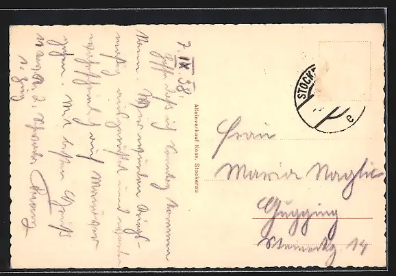 alte Ansichtskarte, gelaufen, Briefmarke entfernt, Stempelspur, guter Zustand