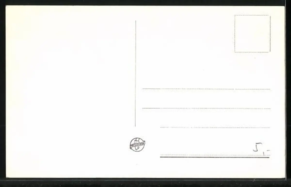 Personenbezogene Daten auf der Rückseite der Karte wurden durch blauen Textmarker unkenntlich gemacht. Die blauen Stellen sind auf die Vorderseite durchgeweicht und wirken sich negativ auf das Postkartenfoto aus