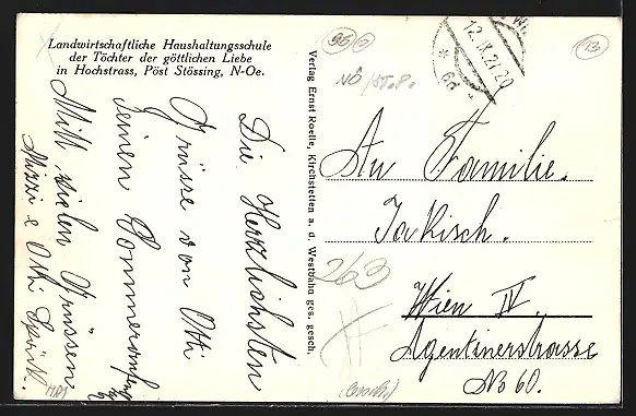 AK Stössing, Landwirtschaftliche Haushaltungsschule Hochstrass der Töchter der göttlichen Liebe