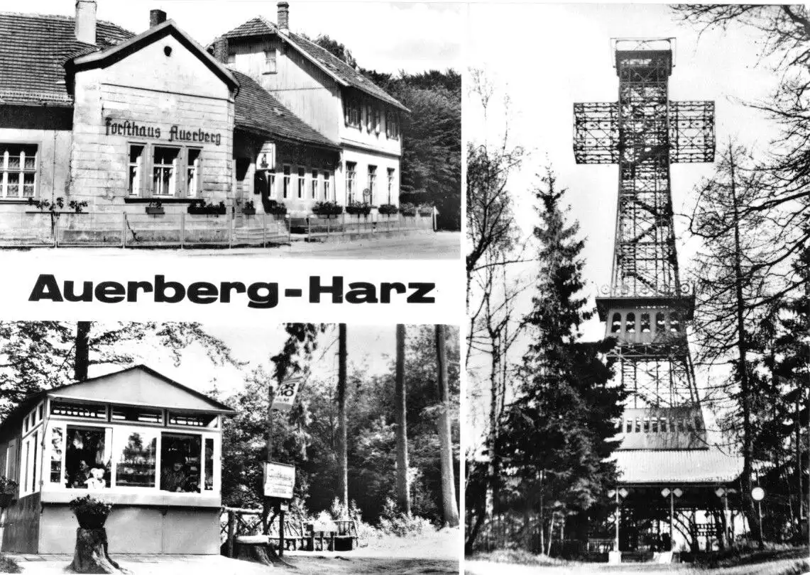 Ansichtskarte Stolberg Harz drei Abb., - Auerberg Gaststätte Auerberg, Kiosk Auerberg, Josephskreuz Erhaltung I-II ungelaufen Druckvermerk: 1975 Herstellungsland: DDR Verlag: Ilse Steinhilb geb. Lohse, 4308 Thale