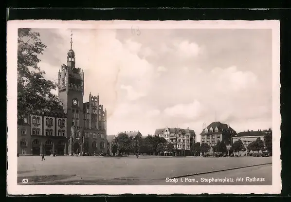 AK Stolp i. Pom., Stephansplatz mit Rathaus